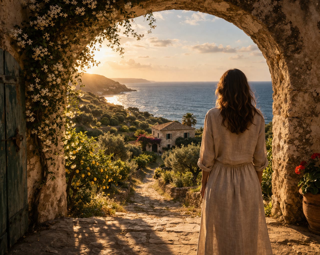The tray held coffee, bread, fig conserve, a slice of the torta della nonna she’d baked before dawn, two cannoli, and a glass of water with a sprig of mint that Valentina had cut from the garden on the way through the kitchen.